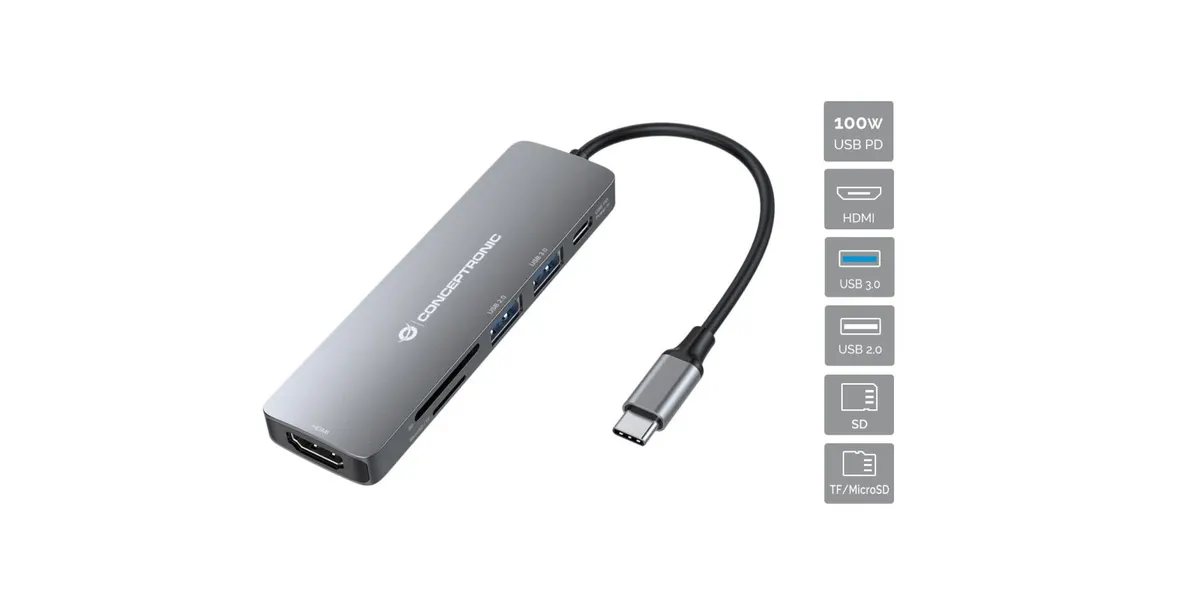 Dock USB-C->HDMI,SD,GbE,USB3.0/2.0,PD